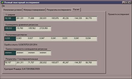 переменная хранящая значение критерия Фишера. Проверка адекватности математической модели, формула 19.