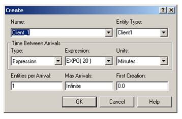 Необходимо определить загрузку зал, среднее время, необходимое клиенту на обслуживание и предложить варианты по повышению эффективности работы операционного клиентов банка . Нужно учесть, что клиенты первого типа прибывают каждые 20±3 минут а второго типа каждые 15±8, третий клиент прибивает каждые 15±5 на стрижку у парикмахера уходит 30 минут, на бритьё 12(время распределения по экспоненциальному закону).