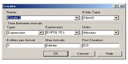 Во второй главе, практической части, приведена общая схема имитационной модели “операционного зала банка ”, технология её моделирования в выбранном программном средстве Arena с полным описанием основных параметров и свойств используемых объектов.