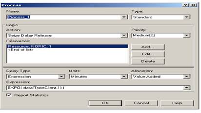 Рассмотрим процесс работы операционного обслуживания банка, изображённые на рисунке 3. На этом этапе, исходя из условий задачи, необходимо описать алгоритм работы модели и задать для каждого модуля соответствующие параметры.