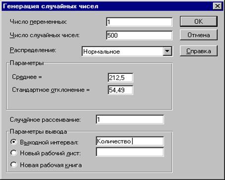 Выберите из списка "Инструменты анализа" пункт "Генерация случайных чисел" и нажмите кнопку "ОК" (рис. 10).