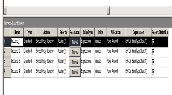 В исследуемой модели имеются транзакты четырех операторов – выполняющие все возможные операции. Клиентов банка можно условно разделить по времени обработки на 4 группы В качестве используемых ресурсов выступающих в банке.