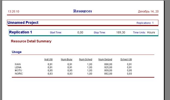 После прогона имитационной модели был получен ряд отчётов с результатами моделирования.