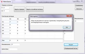 } else {ShowMessage("Игра не решается в чистых стратегиях, попробуете решить её итерационным методом");}
