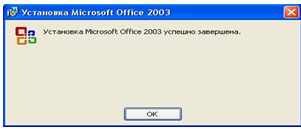 Это окно означает, что Microsoft Office 2003 успешно установлен на ваш ПК (рисунок 1.5)