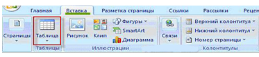 Для того, чтобыдобавитьв документMicrosoft Office Word таблицу, нужно перейти на страницуленты ВСТАВКА. Затем установить курсор в место вставки на документе и нажать на кнопку ТАБЛИЦА (рисунок 1.2)