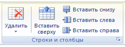 Рисунок. 2.7. Группа Строки и столбцы на вкладке Макет