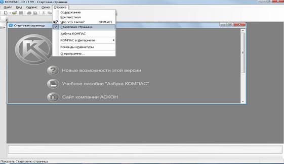 На экране появится Стартовая страница Если вы закроете Стартовую страницу, то дальнейший доступ к ней возможен с помощью команды Справка →Стартовая страница.