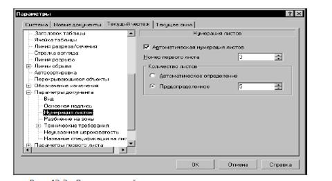 • с помощью окна Параметры (вкладка Текущий чертеж, раздел Параметры первого листа);
