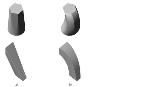 Для задания формы объемных элементов выполняется такое перемещение плоской фигуры в пространстве, след от которой определяет форму элемента.