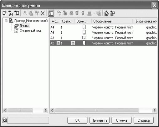 • при помощи Менеджера документа (об этом способе будет рассказано ниже при описании многолистовых чертежей).