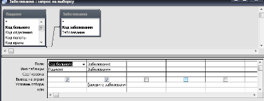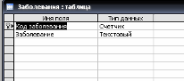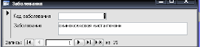 Таблица «Заболевания» содержит сведения о заболеваниях, которыми болеют пациенты, и имеет следующий вид: