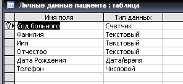 Рисунок 5 – Таблица «Личные данные о пациенте»