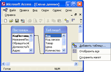 В данном случае связь между таблицами Access строит автоматически. Это происходит тогда, когда две таблицы имеют одинаковые названия связанных полей и согласованные типы данных, причем хотя бы в одной из таблиц связанное поле является ключевым.