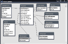 В данном случае база данных строится для предметной области «Медицинский диагностический центр». В процессе изучения данной предметной области были определены следующие объекты: врачи, пациенты, препараты, заболевания, процедуры. Для каждого объекта были созданы таблицы.