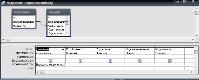 - таблицы и поля в них, которые будут участвовать в запросе;