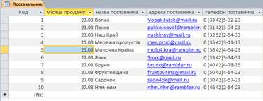19. Відкриваю таблицю «Постачальник» та заповнюю в ній 10 рядків за своїм бажанням.