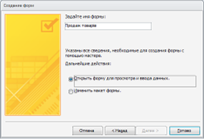 3. В наступних діалогових вікнах майстра вибираю зовнішній вигляд форми, стиль, задаю ім’я. Вибираю Готово .
