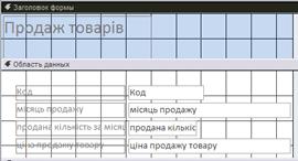 4. Відкриваю форму Продаж товарів в режимі Конструктора. Цей режим призначений для створення та редагування форм.