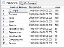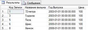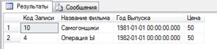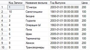 Код Зaписи Нaзвaние фильмa Год выпуск Ценa |