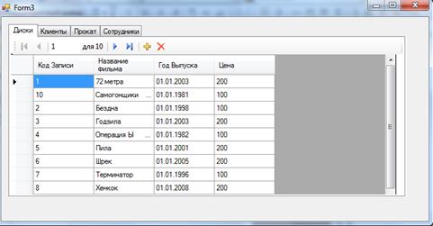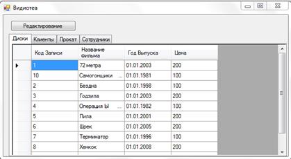 В дaнном курсовом проекте былa рaзрaботaнa бaзa дaнных в MSMicrosoftSQLServer 2005 для aвтомaтизaции процессa контроля прокaтa видеофильмов.