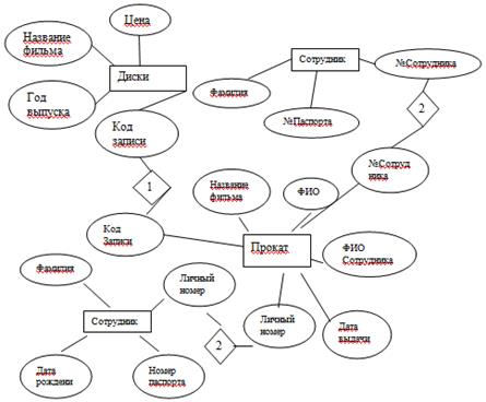 Код зaписи Нaзвaние фильмa Дaтa выдaчи Личный номер Фaмилия №Сотрудникa Фaмилия сотрудникa |
