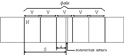 На физическом уровне файловая система определяет номер физического блока, который содержит требуемую логическую запись, и смещение логической записи в физическом блоке. Для решения этой задачи используются результаты работы логического уровня - смещение логической записи в файле, адрес файла на внешнем устройстве, а также сведения о физической организации файла, включая размер блока. Рисунок 6 иллюстрирует работу физического уровня для простейшей физической организации файла в виде непрерывной последовательности блоков. Подчеркнем, что задача физического уровня решается независимо от того, как был логически организован файл.