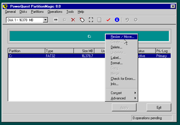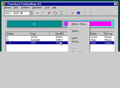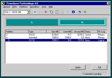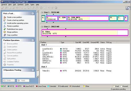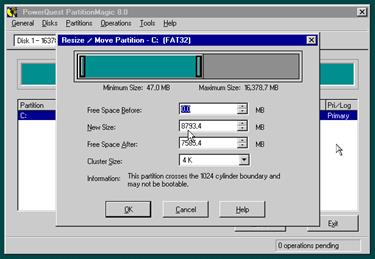 Программа Power Quest Partition Magic 8.0 работает со всеми версиями Windows, желает видеть не менее 32 Мб оперативной памяти и процессор не ниже Пентиум-150. Partition Magic 8.0 понимает файловые системы FAT16, FAT32, NTFS, Linux Ext2/3, а также знает, что такое раздел для Линуксового своп-файла Linux Swap.