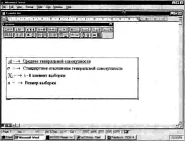 Если Редактор формул запущен автономно, открывается его прикладное окно (обычное окно приложения), аналогичное окну WinWord 7.0. Оно содержит такие же меню, как и вызванное из WinWord 7.0.