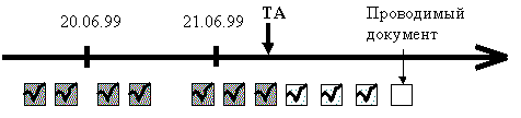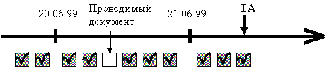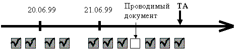 Приведенная на рисунке схема отражает ситуацию, когда документ проводится после ТА, но между проводимым документом и ТА уже есть ранее проведенные документы.