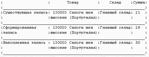 то запрос сначала обойдет все документы вида РасходнаяНал за указанный период, а затем - все документы вида РасходнаяКредит . И каждый раз запрос будет формировать запись, заполняя поля группировок, функций и внутренних переменных. После формирования записи, запрос будет добавлять её в таблицу выборки. Если полученного сочетания значений группировок нет, запрос добавляет запись в таблицу выборки: