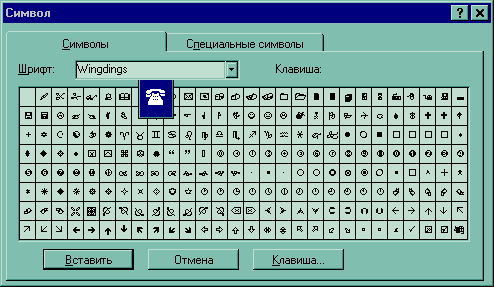рис.1. Вид диалога вставки символа