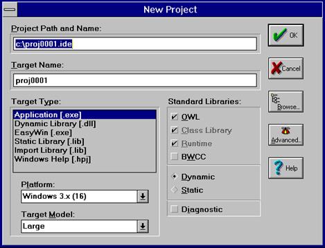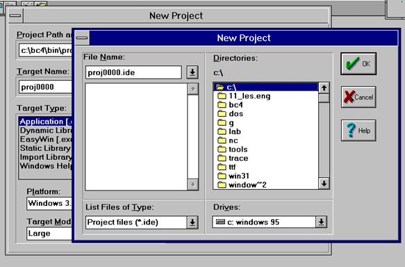 3) Щелчок мышью на команде New project (или выбрать данный пункт меню с помощью клавиш и ¯ и нажать ENTER). В дальнейшем для краткости будем говорить, что нужно выполнить команду Project|New project (команду New project из меню Project).