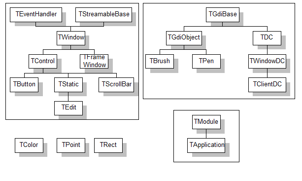 Класс TWindow содержит 12 член-данных и 175 член-функций, из котрых в данном пособии используются: