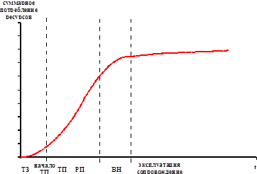 Это соотношение характерно и для отдельных стадий этапов разработки и кривые потребления на отдельных с. и э. пересекаются, и накладываемые части кривой, связанной с конкретным этапом могут переходить на следующие этапы.
