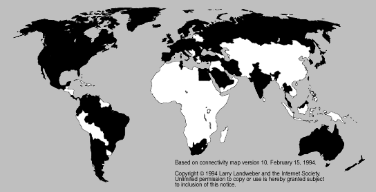 Важно отметить то, что усилия NSF по развитию сети привели к тому, что любой желающий может получить доступ к сети. Прежде Internet была доступна только для иссле-дователей в области информатики, государственным служащим и подрядчикам. NSF спо-собствовал всеобщей доступности Internet по линии образования, вкладывая деньги в подсоединение учебного заведения к сети, только если то, в свою очередь, имело планы распространять доступ далее по округе. Таким образом, каждый студент четырехлетнего колледжа мог стать пользователем Internet.