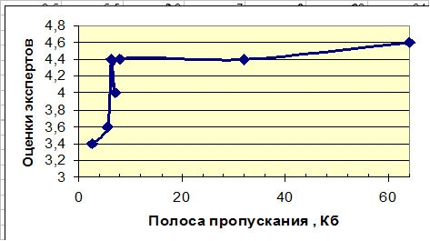 На графике (рис.3) показана оценка методом общего мнения различных популярных звуковых кодер-декодеров. По горизонтальной оси отложена требуемая ширина канала для передачи речи, сжатой определённым кодером, по вертикальной оси – собственно оценка.