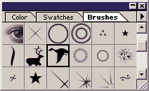 Чтобы выбрать кисть, поместите указатель мыши в соответствующую ячейку палитры и выполните щелчок. В результате указанный образец станет активным и вокруг него появится черная рамка.