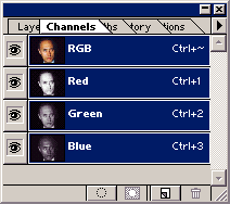 Палитра Channels (Каналы) используется при работе с цветовыми и служебными каналами обрабатываемых изображений (рис.12).