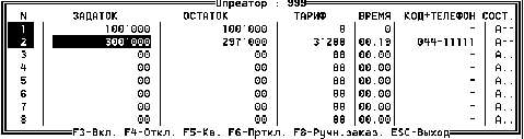 Основные функции при автоматической связи: подключение/отключение кабин с пульта оператора; фиксация начала разговора, его продолжительности, а также кода зоны, набираемого абонентом; регистрация денежного задатка абонента, тарификация времени разговора и вычисление остатка от задатка по окончании разговора; заблаговременное уведомление клиента об окончании оплаченного времени кратковременной подачей звукового сигнала; уведомление клиента об ошибочно набранном им коде города подачей непрерывного звукового сигнала; автоматическое отключение абонента при исчерпании задатка; печать извещения по окончании каждого разговора, печать дневника работы оператора.