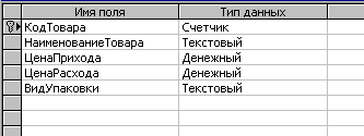 В первую свободную ячейку столбца "Имя поля" введем "КодПоставщика", а в столбце "Тип данных" выберем "Счетчик". Поле счетчика очень удобно, так как будет автоматически нумеровать записи, поэтому используется для полей, значение которых должно быть уникальным для каждой записи. После удаления записи с определенным номером, удаленный номер больше не будет присваиваться новым записям.