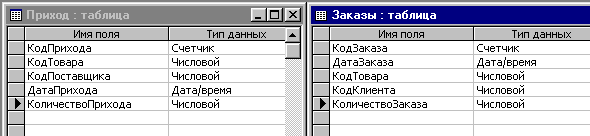В результате вышеописанных действий база данных складского учета содержит:
