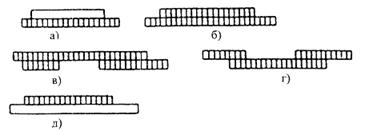 Для ситуации "продолжение" характерно частичное перекрытие черных серий обеих строк (рис.4,б).