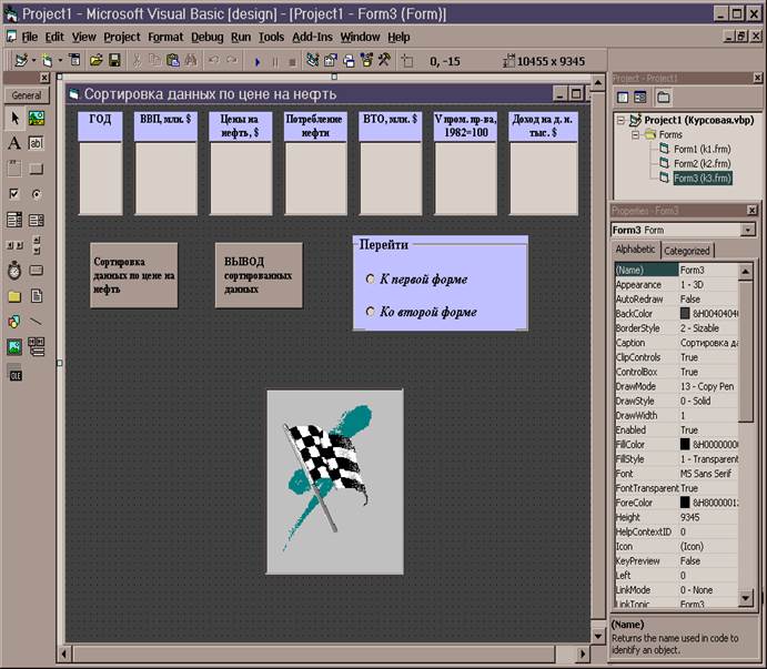 На этом заканчивается часть работы, выполняемая в Microsoft Access, и начинается непосредственное создание программы в Visual Basic, которая выполняла бы необходимые по условию задачи операции над данными, размещенными в таблицах Microsoft Access.