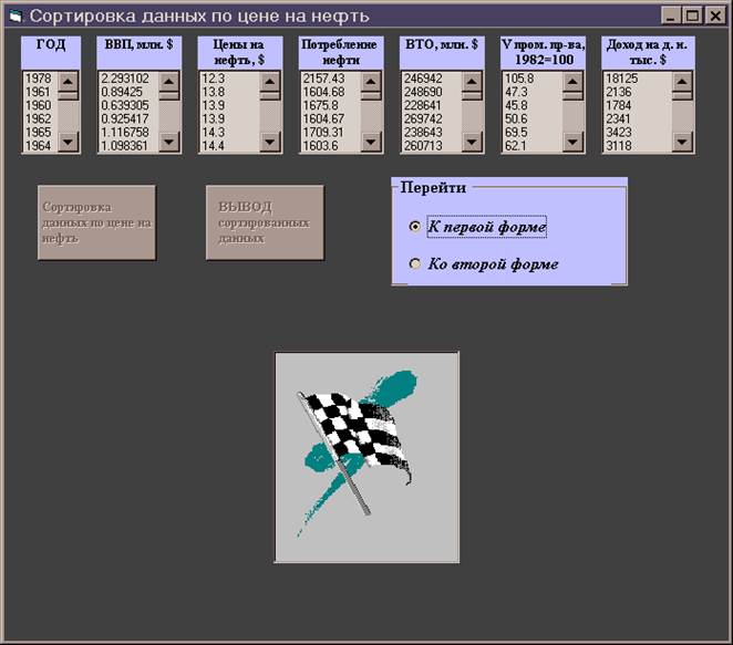 Разработать форму и программу в Visual Basic, сортирующую данные по цене на нефть, и посмотреть, есть ли зависимость этого параметра с темпами изменения размера ВВП.