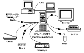 Человек обменивается информацией с окружающим миром через глаза, уши (рецепторы), с помощью голоса и рука (эффекторы). Компьютер же обменивается информацией с внешним миром благодаря разнообразным периферийным устройствам (внешним устройствам ). Периферийные устройства только расширяют возможности компьютера, но не являются его составными частями - компьютер будет нормально работать и в их отсутствии. Периферийные устройства работают и ломаются независимо от типа и марки компьютера, к которому они подключены. Поэтому, когда задается вопрос вроде