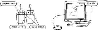 С помощью мыши (mouse) пользователь указывает (выбирает) точку или графический объект на экране монитора. Для этого мышь позволяет свободно перемещать по всему экрану графический указатель, причем форма курсора мыши зависит от конкретной программы. Разрешающая способность мыши - это то минимальное расстояние, после перемещения на которое, она считает, что оказалась в новом положении, и переместит свой графический курсор. Современные мыши имеют разрешающую способность от 1/250 до 1/2500 дюймов.