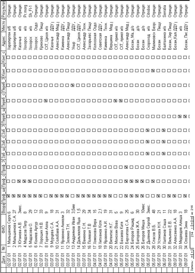 · Kontakt_Kvartal по этому запросу выводится результирующие записи по предидущим запросам относящимся к Контактным шигеллам;