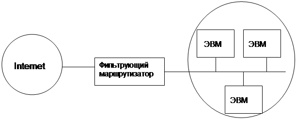 В этой схеме первичная безопасность обеспечивается фильтрующим маршрутизатором. Пакетная фильтрация в фильтрующем маршрутизаторе может быть реализована одним из следующих способов: