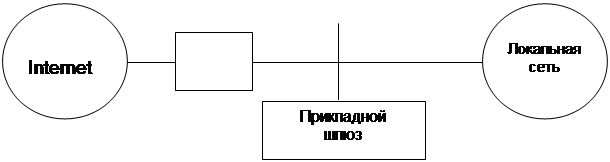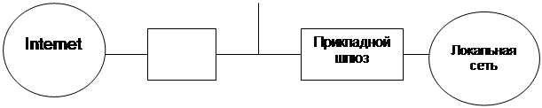 В отличие от схемы межсетевого экрана с фильтрующим маршрутизатором прикладной шлюз полностью блокирует трафик IР между сетью internet и защищаемой сетью. Только полномочные сервера - посредники, располагаемые на прикладном шлюзе, могут предоставлять услуги и доступ пользователям.
